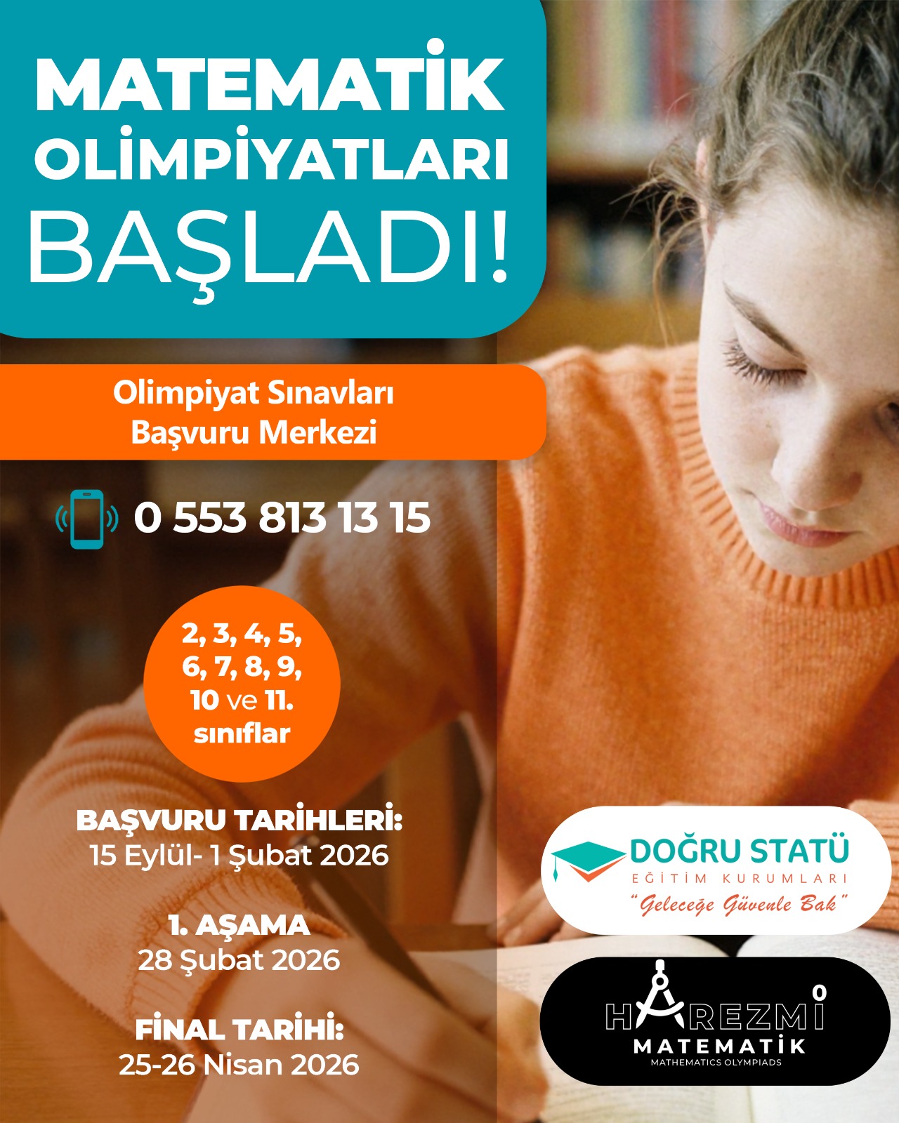 İlkokul – Ortaokul – Lise Düzeyinde Ulusal Olimpiyat. Harezmi Matematik Olimpiyatları, matematiği ezberden çıkarıp analitik düşünme, yorumlama ve problem çözme becerileri üzerinden ölçen, iki aşamalı ulusal bir olimpiyattır. Sorular; yeni nesil, muhakeme odaklı ve öğrencinin gerçek matematiksel seviyesini ortaya çıkaracak şekilde hazırlanır.