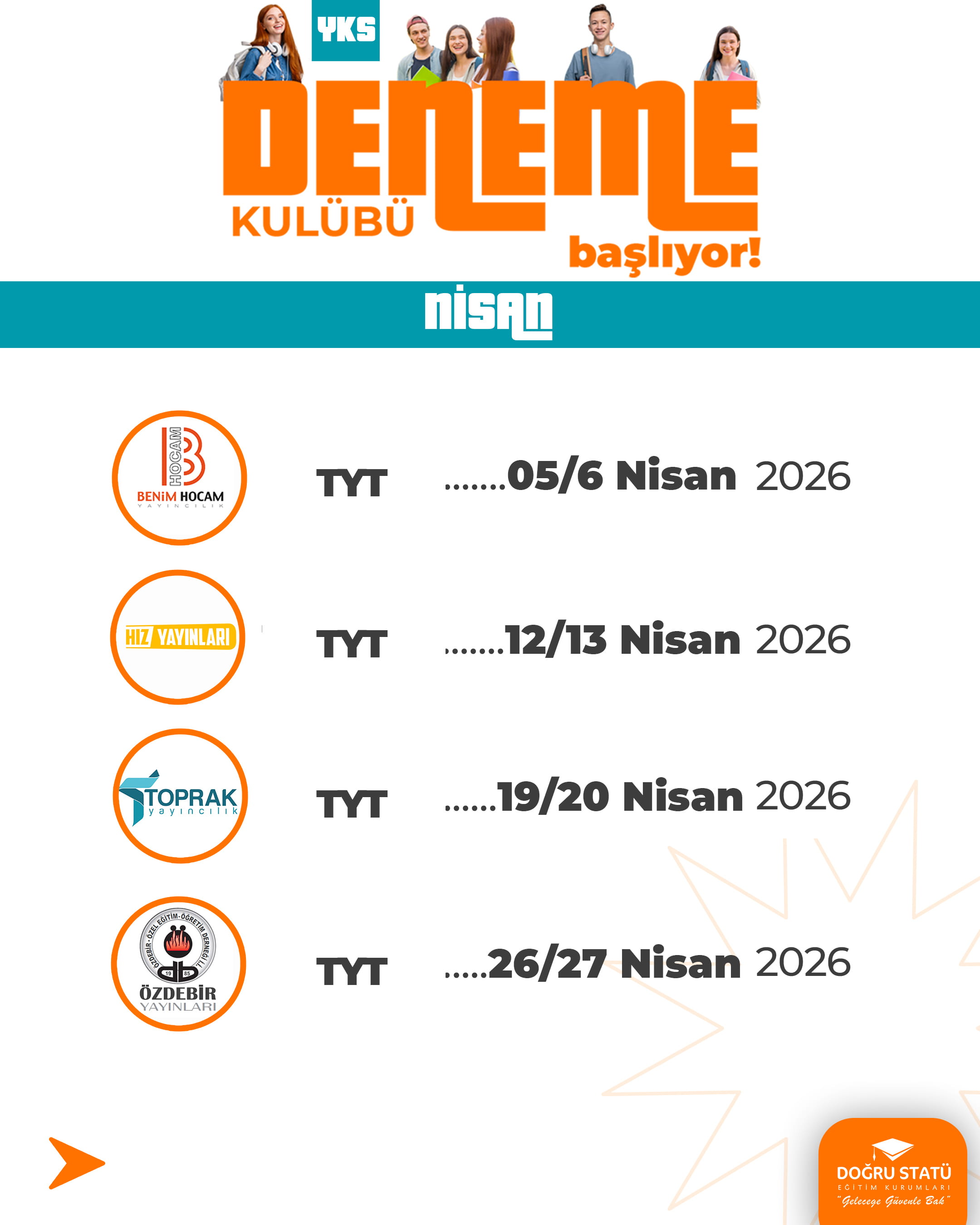 YKS’ye hazırlık, son aylarda doğru deneme sıklığı ve doğru analiz ile kazanılır. Plansız denemeler motivasyon değil, belirsizlik üretir. Doğru Statü YKS Deneme Kulübü, 12. sınıf öğrencilerinin TYT ve AYT sürecini sistemli, ölçülebilir ve kontrollü şekilde tamamlaması için hazırlanmış kapsamlı bir deneme programıdır.